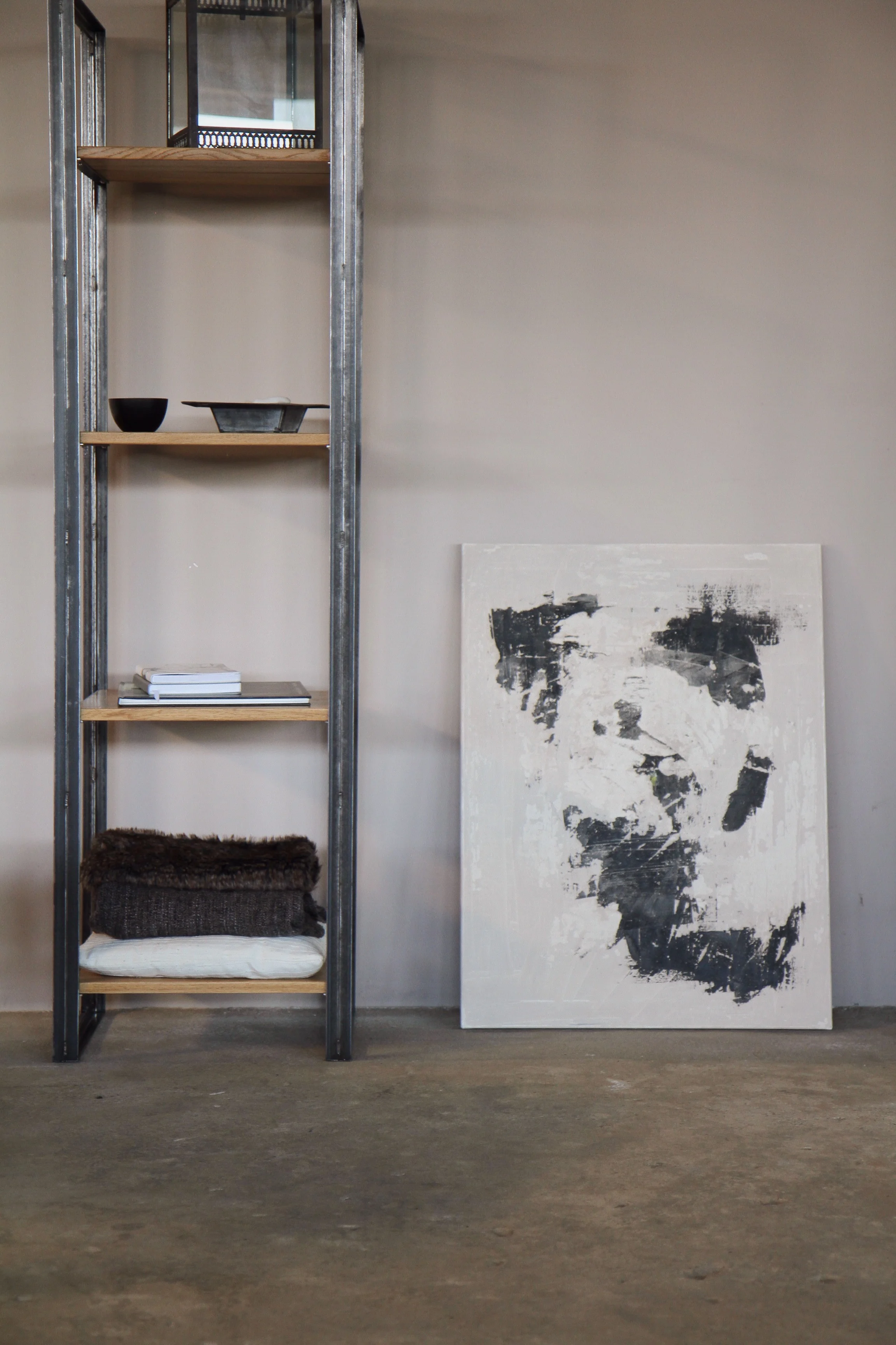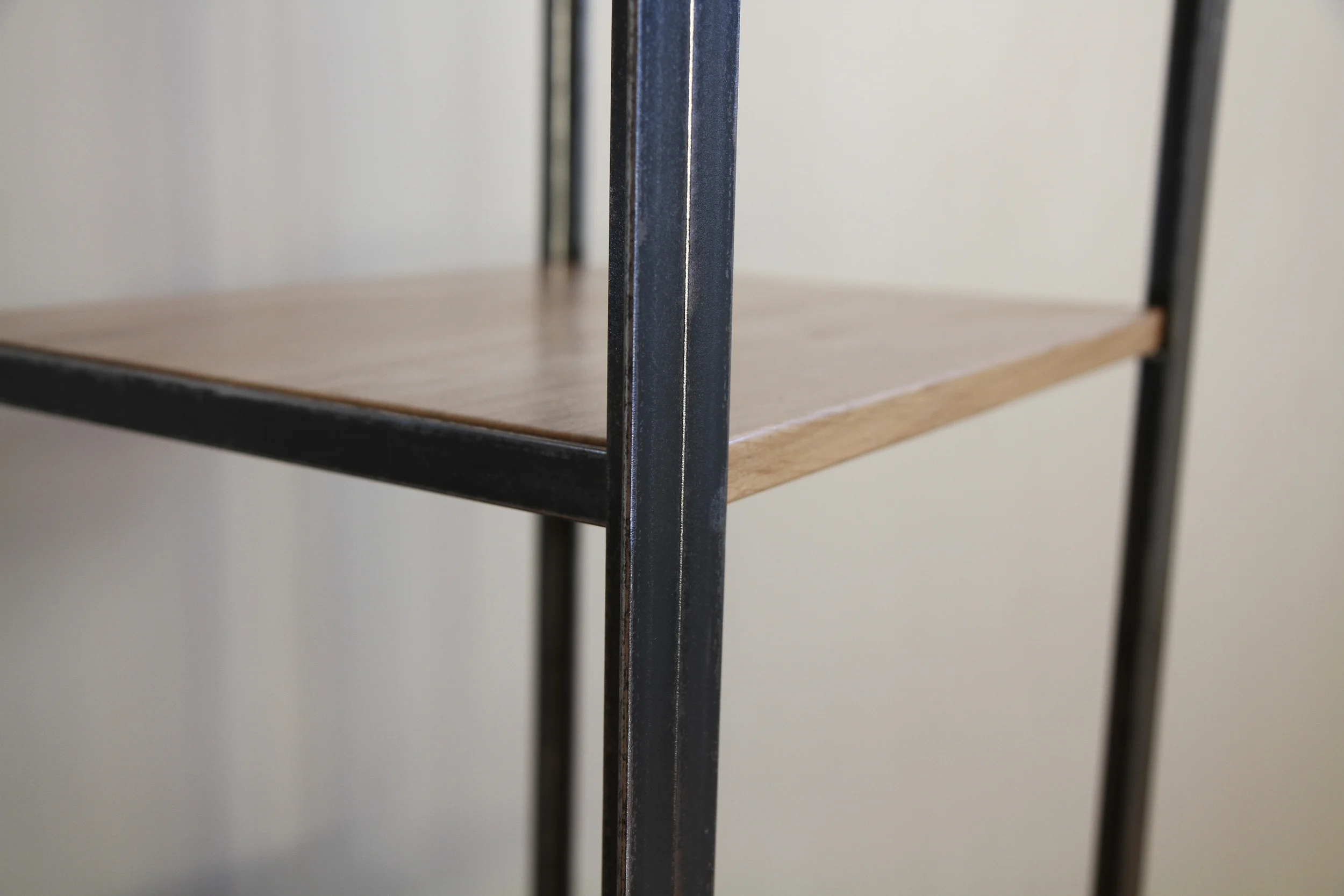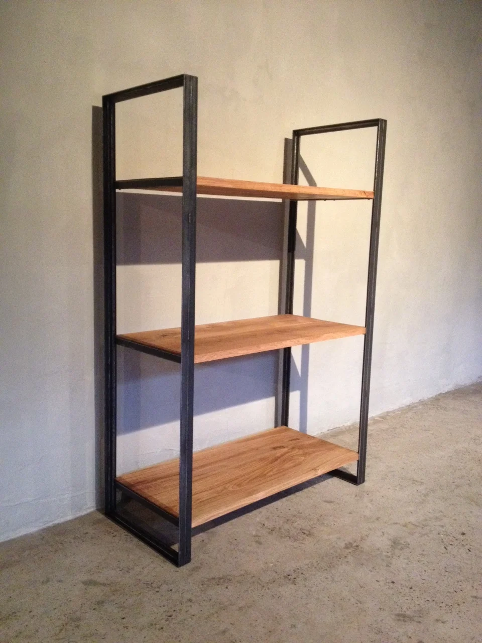 The shelving in these photos are made out of French Oak, the pictures at the top boasting the oiled wood finished and blacked metal, and the lower boasting the wood completely natural and with a raw metal finish.